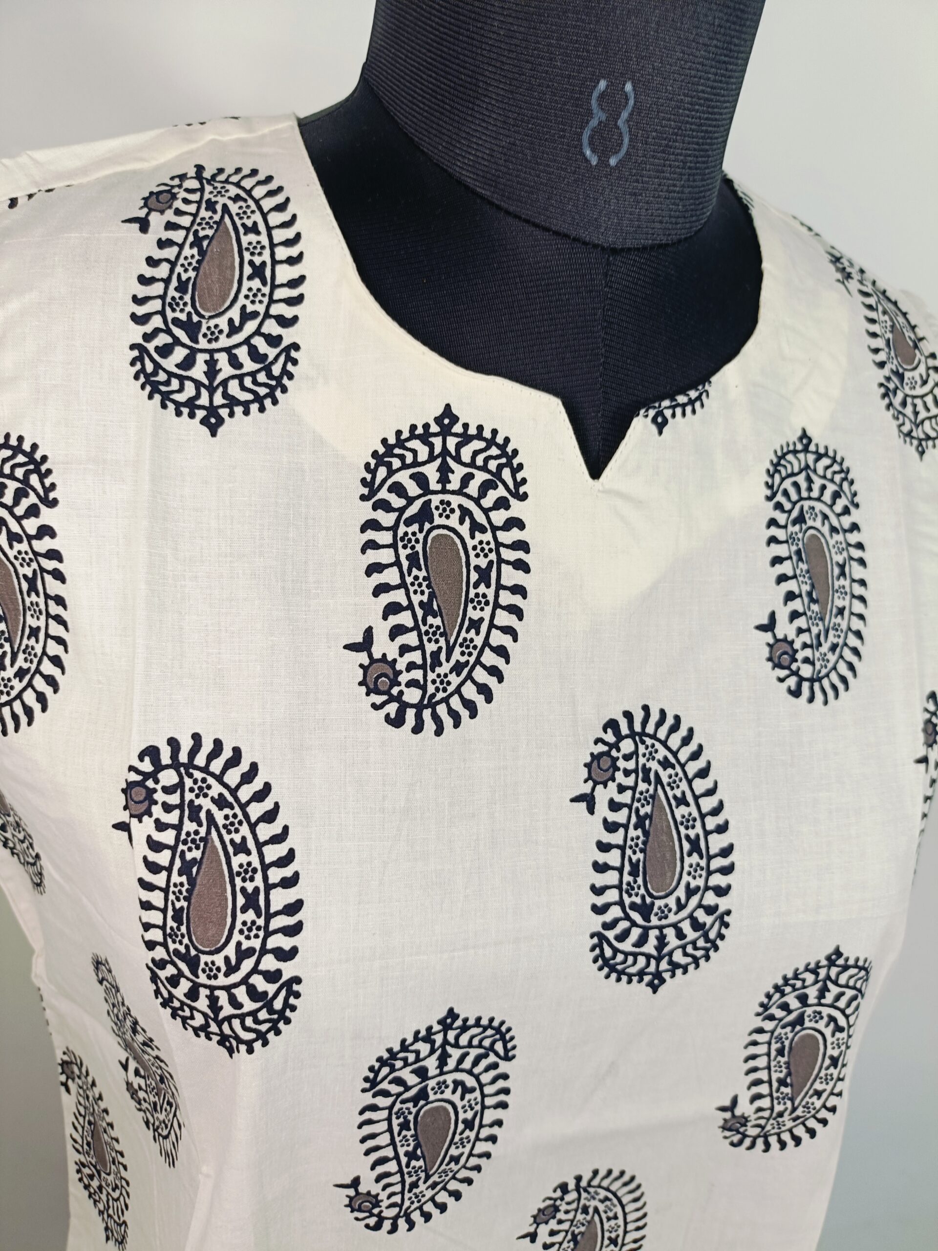 Design: Handblock printed with intricate black paisley motifs
