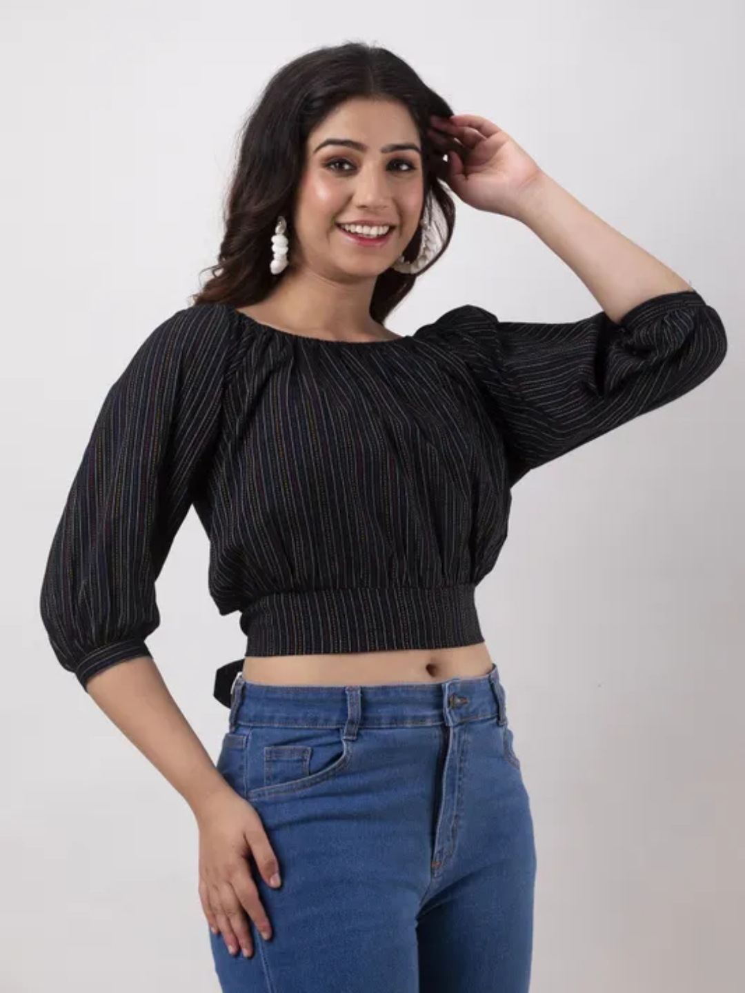 Step out in style with our crinkled crop tops, designed with soft gathers and ruffle detailing for a flattering feminine touch. Featuring a square neckline and elastic hem for comfort and flair, this top is perfect for casual outings, brunch dates, or a day out shopping.