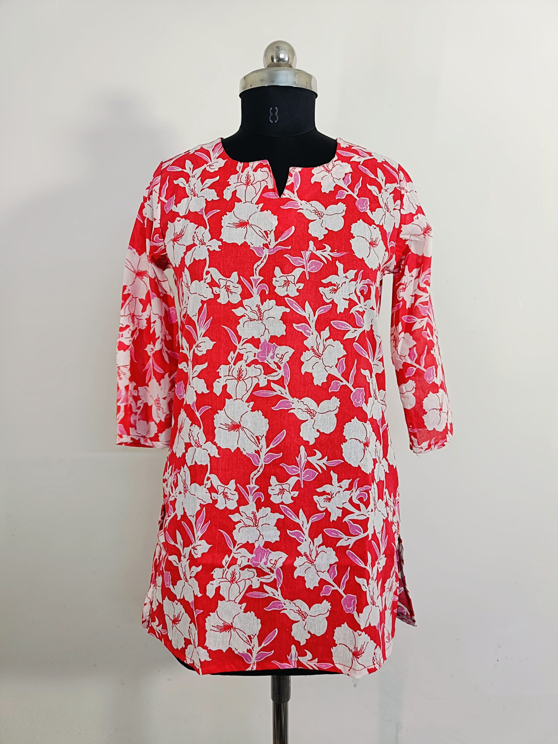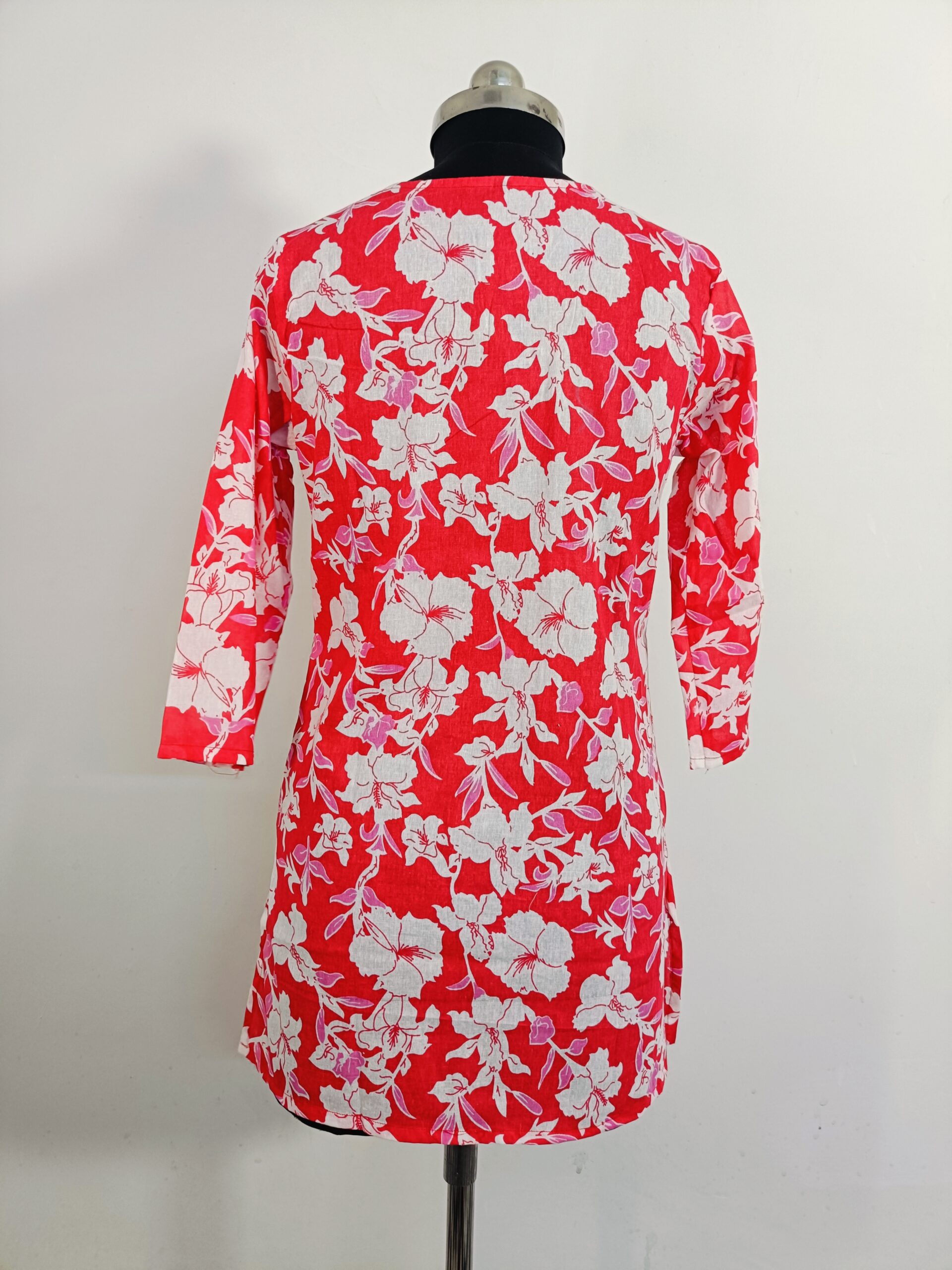 Make a bold yet elegant statement with our Red Floral Straight Kurti, crafted for the modern woman who embraces comfort and charm. Featuring a vibrant red base adorned with white and light pink floral prints, this kurti comes with a stylish notch neckline and comfortable 3/4th sleeves. Perfect for casual outings, daily wear, or summer gatherings, the soft breathable fabric ensures all-day ease. Pair it with white or pastel leggings or pants for a fresh ethnic look.
