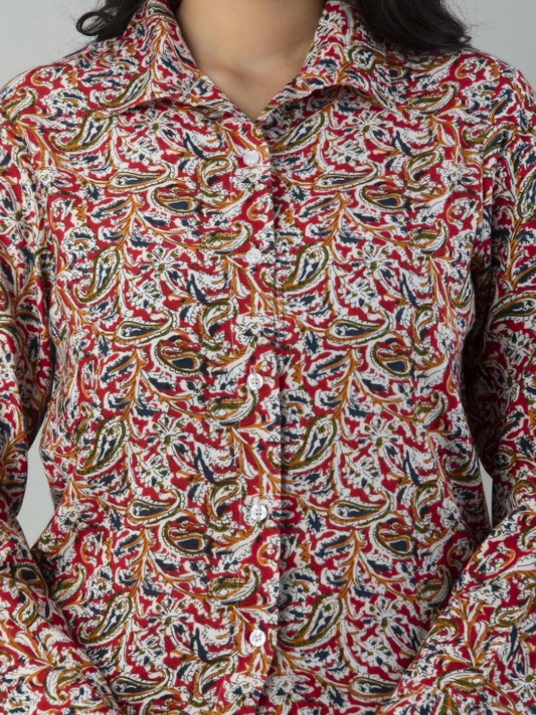 Brighten your basics with Rangkari’s multicolor paisley print shirt. Featuring a smart collared neckline, full sleeves, and a relaxed fit, this shirt effortlessly combines traditional motifs with modern style. Pair it with jeans for a laid-back look or tuck it in for a semi-formal vibe.