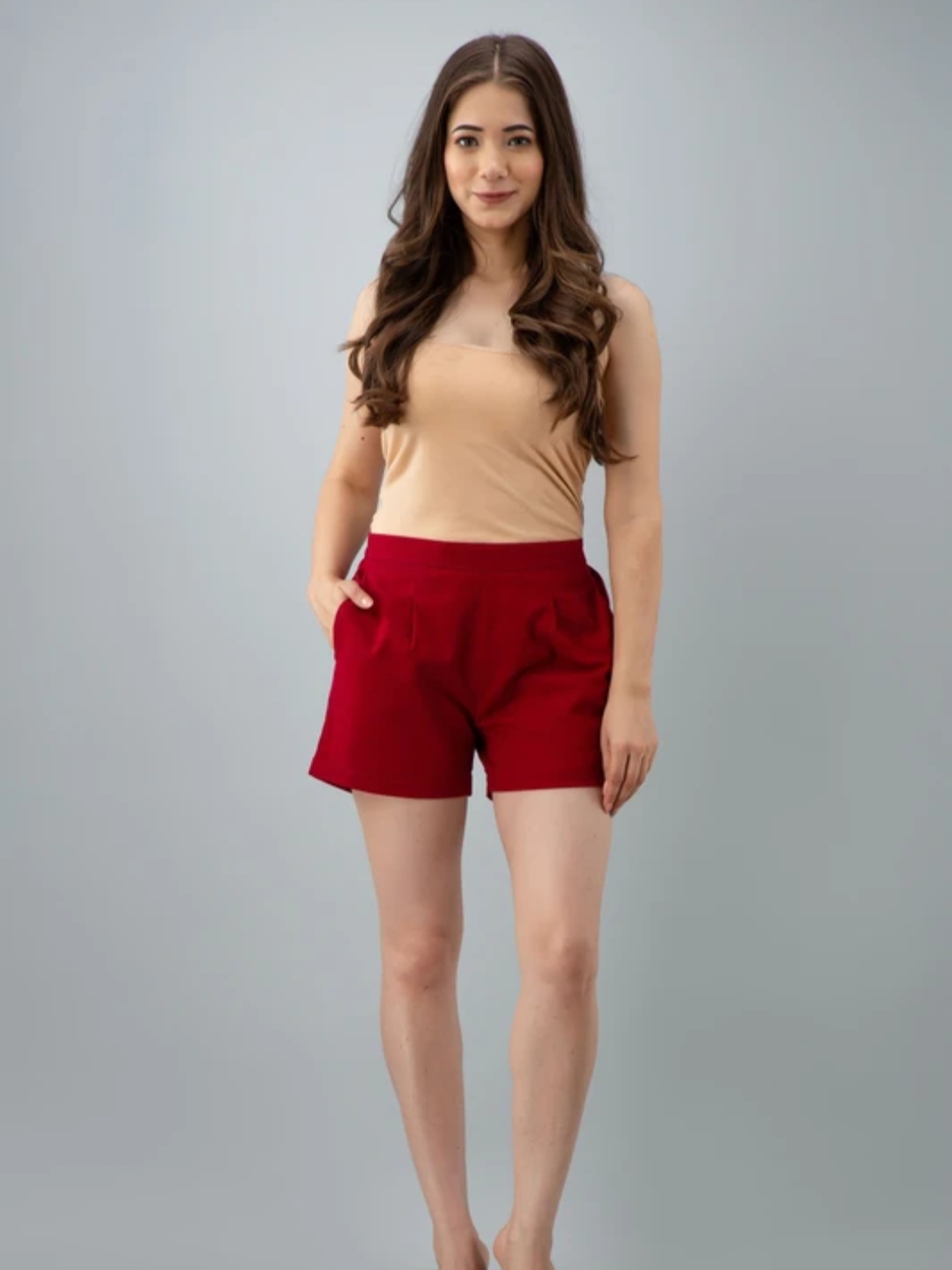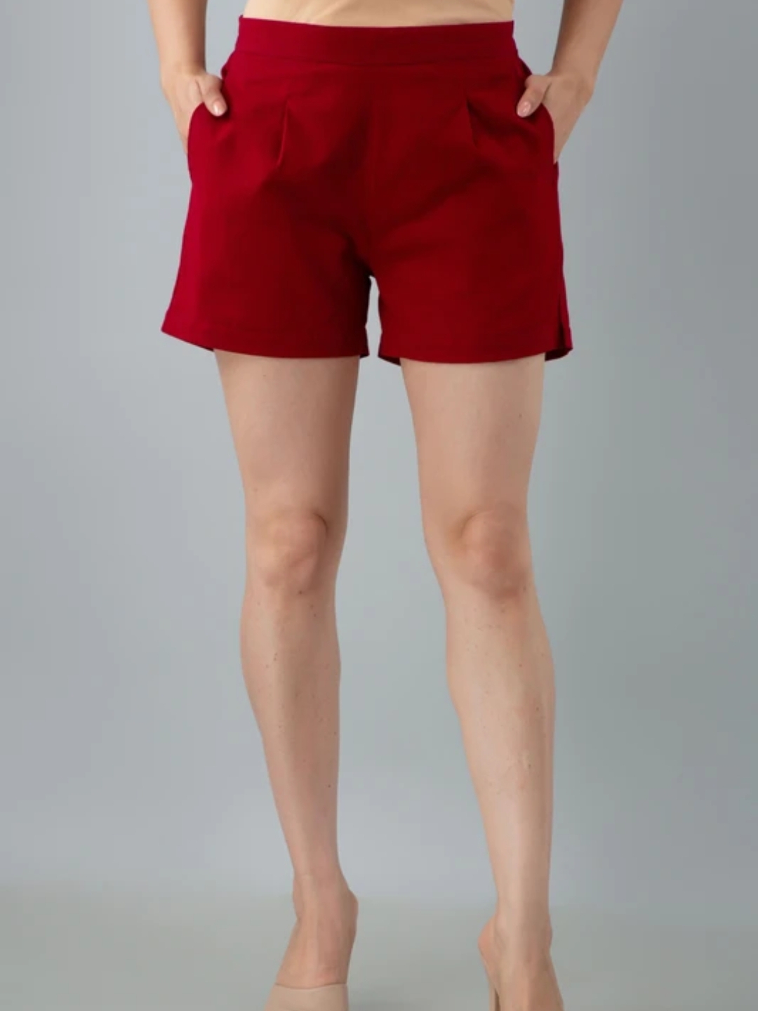 Add a pop of color and confidence to your wardrobe with these solid high-waisted shorts by Rangkari. Featuring a flattering waistband, front pleats for structure, and deep side pockets for convenience, these shorts are perfect for both casual and semi-formal looks. Pair with crop tops or tucked-in shirts to slay your summer style effortlessly.